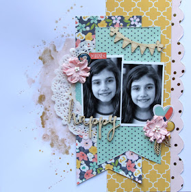I then chose a sentiment card from the die cut pack the suited my photo and tucked it under my photo slightly over lapping the frame.